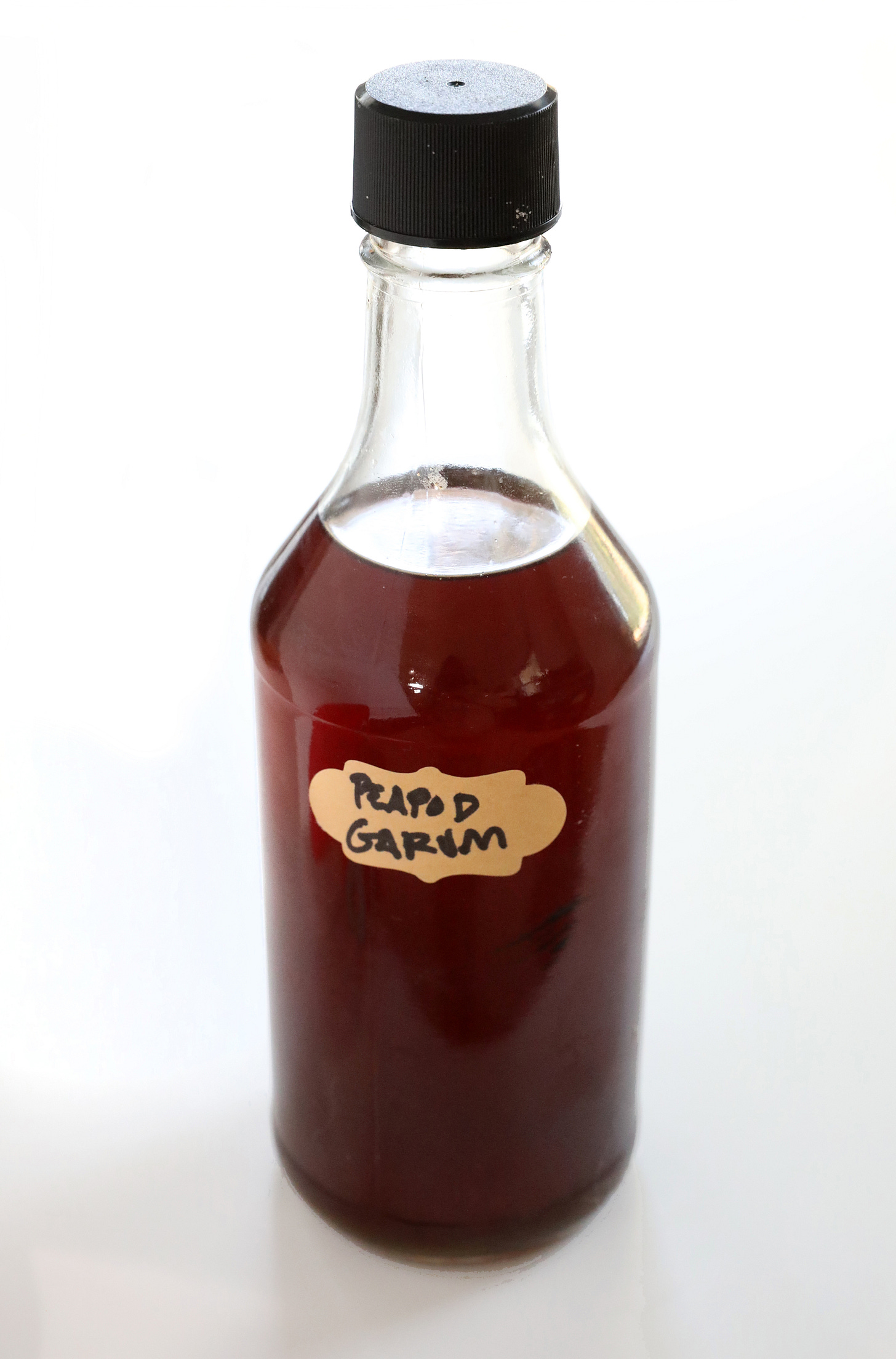 I harvested most of my peas a couple of weeks ago, and as I shelled the ones without tender, edible pods I thought about what to do with the pods as I tossed them into a bowl. They’re stringy and fibrous, but have a fair amount of flavor, so I figured they might made a good garum-type liquid. I blended them 2:1…